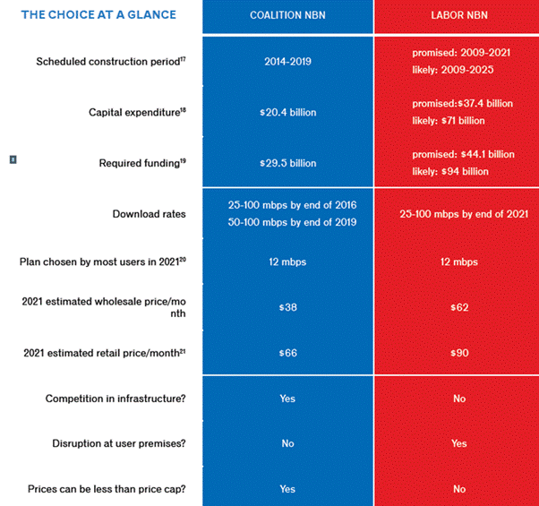 The Coalition’s Broadband Policy included a table labelled “The Choice
