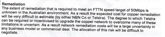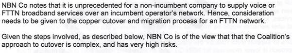 higher than for a fibre network. The caretaker advice prepared by NBN Co points