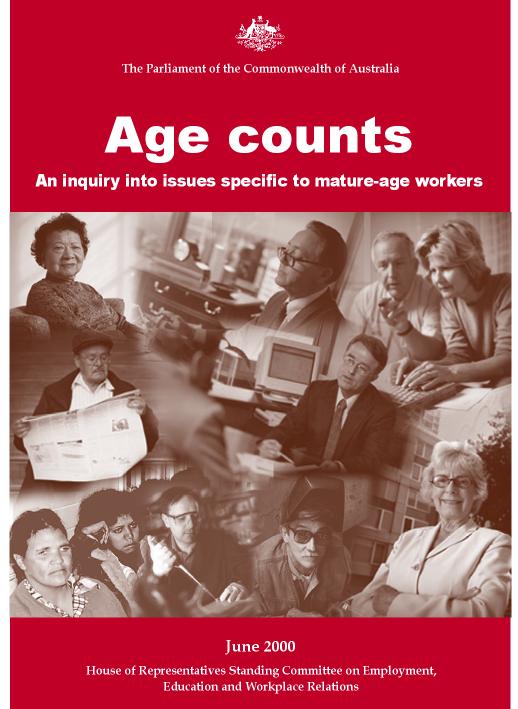 Cover (JPG image) Front Pages (PDF format) Foreword Membership of the Committee Terms of reference List of abbreviations Executive summary and list of recommendations Chapter 1 - Setting the scene (PDF format) Origins of the inquiry Structure of the report Definitions The issues Demographic trends The mature-age labour market Conclusion Chapter 2 - Consequences of unemployment (PDF format) Introduction Financial, budgetary and economic issues Consequences for individuals and families Consequences for the wider community Conclusion Chapter 3 - Causes of mature-age unemployment (PDF format) Introduction Mismatch between supply and demand in the labour market Casual and part-time employment Rural and regional unemployment and mobility of labour Causes specific to mature-age workers Impact of government policies Conclusion Chapter 4 - Dealing with unemployment (PDF format) Introduction Macroeconomic influences Age discrimination Dealing with retrenchments and redundancies Skills training Government policies Longitudinal studies Casual and part-time work Transport costs Alternative paths Phased retirement Service providers Accessing superannuation Conclusion Chapter 5 - Establishing a small business - a high risk option (PDF format) Introduction The small business option Reducing the risk of business failure New Enterprise Incentive Scheme Other small busniess programs Awareness of government programs Conclusion Appendix A - Conduct of the inquiry (PDF format) Appendix B - List of submissions (PDF format) Appendix C - List of exhibits (PDF format) Appendix D - List of hearings & witnesses (PDF format) Appendix E - References (PDF format) Appendix F - Australian age discrimination laws (PDF format)